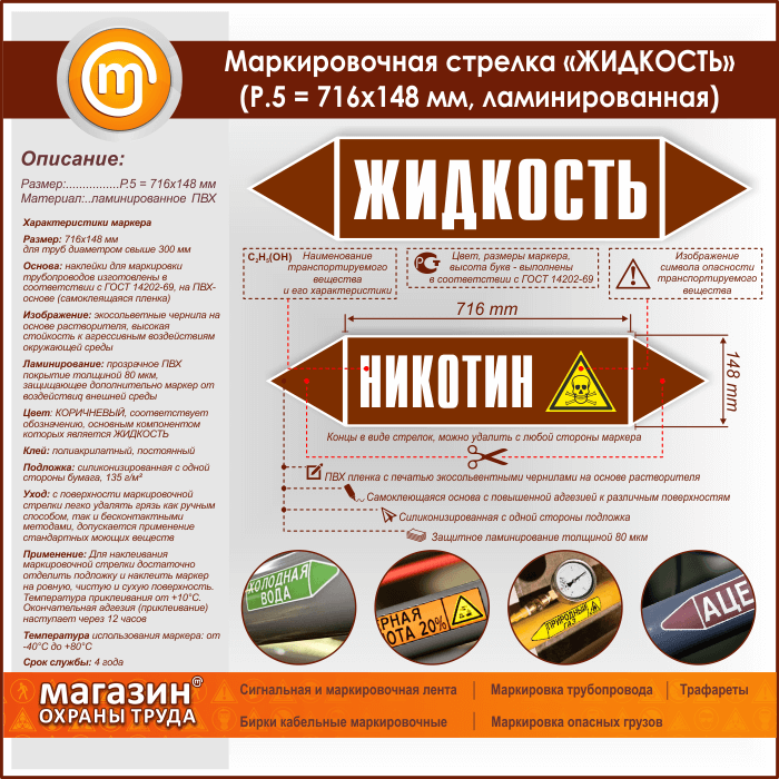 Маркировочная стрелка «ЖИДКОСТЬ» (P.5 = 716х148 мм, самоклеящаяся плёнка с ламинированием) в Пушкино купить
