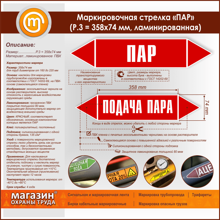 Маркировочная стрелка «ПАР» (P.3 = 358х74 мм, самоклеящаяся плёнка с ламинированием) в Пушкино купить