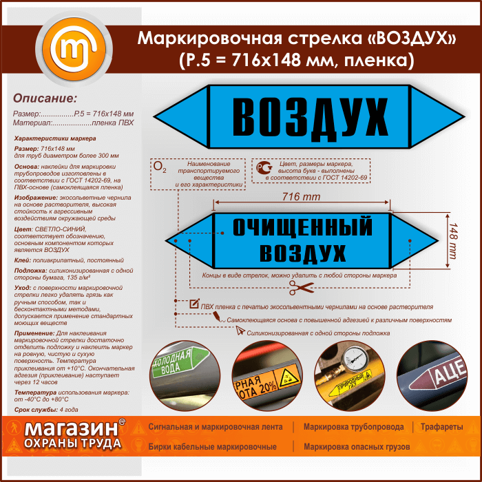 Маркировочная стрелка «ВОЗДУХ» (P.5 = 716х148 мм, самоклеящаяся плёнка) в Пушкино купить