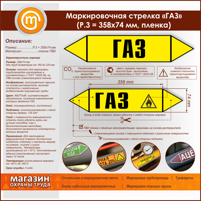 Маркировочная стрелка «ГАЗ» (P.3 = 358х74 мм, самоклеящаяся плёнка) в Пушкино купить