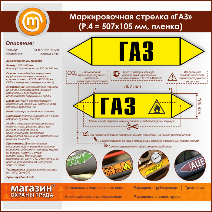 Маркировочная стрелка «ГАЗ» (P.4 = 507х105 мм, самоклеящаяся плёнка) в Пушкино купить