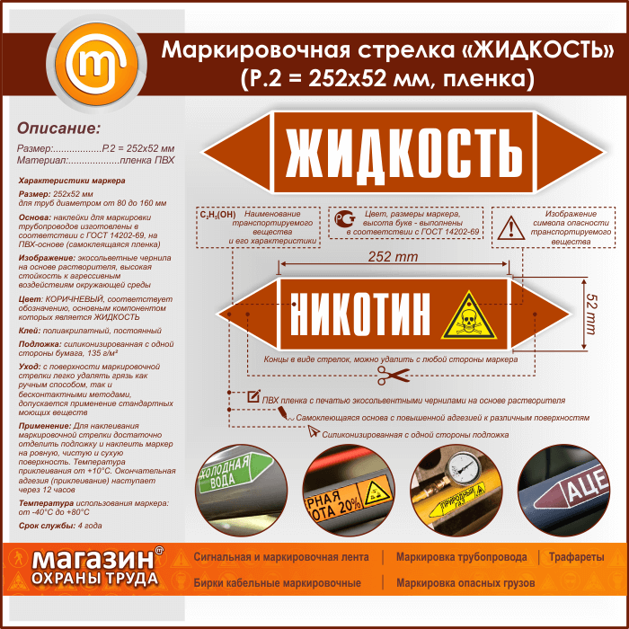 Маркировочная стрелка «ЖИДКОСТЬ» (P.2 = 252х52 мм, самоклеящаяся плёнка) в Пушкино купить