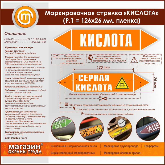 Маркировочная стрелка «КИСЛОТА» (Р.1 = 126х26 мм, самоклеящаяся плёнка) в Пушкино купить