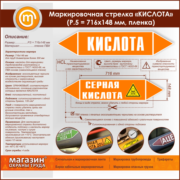 Маркировочная стрелка «КИСЛОТА» (P.5 = 716х148 мм, самоклеящаяся плёнка) в Пушкино купить