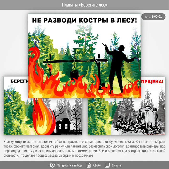Плакаты «Берегите лес» (ЭКО-01, 3 листа) в Пушкино купить