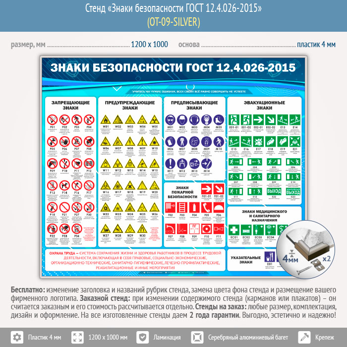 Стенд «Знаки безопасности ГОСТ 12.4.026-2015» (OT-09-SILVER) в Пушкино купить