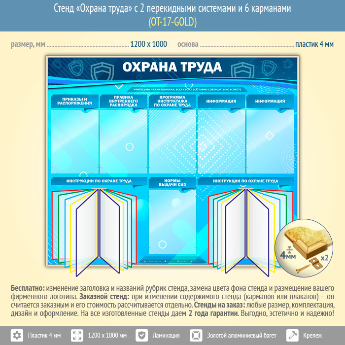 Стенд «Охрана труда» с 2 перекидными системами и 6 карманами (OT-17-GOLD) в Пушкино купить