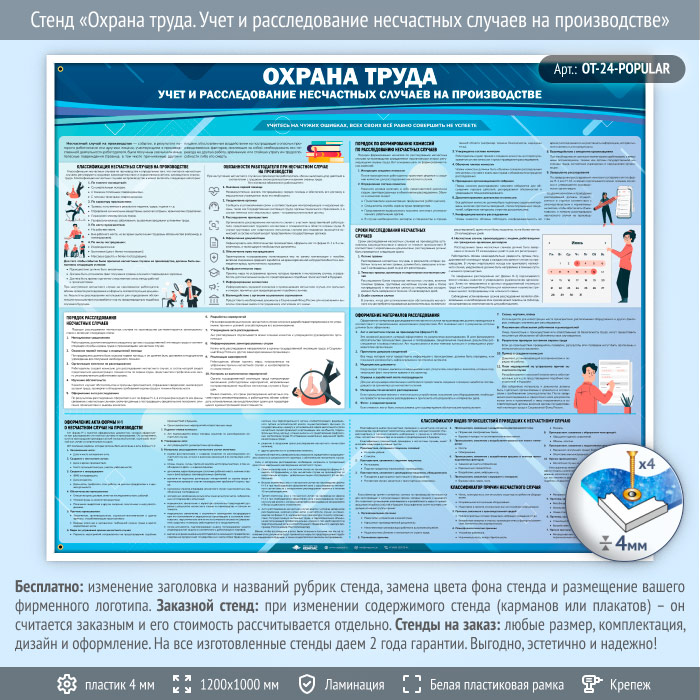 Стенд «Охрана труда. Учет и расследование несчастных случаев на производстве» (OT-24-POPULAR) в Пушкино купить