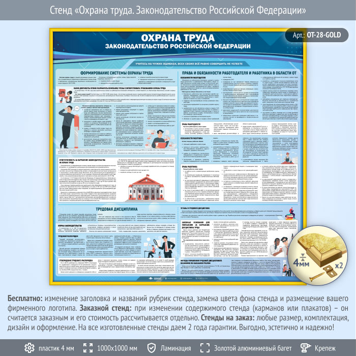Стенд «Охрана труда. Законодательство Российской Федерации» (OT-28-GOLD) в Пушкино купить