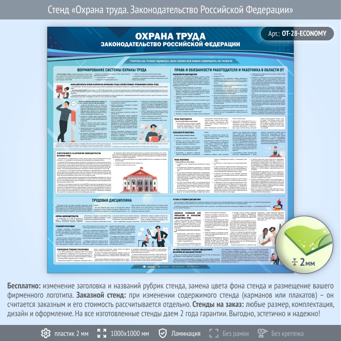 Стенд «Охрана труда. Законодательство Российской Федерации» (OT-28-ECONOMY) в Пушкино купить