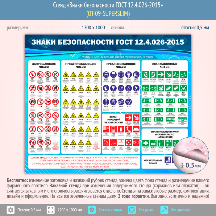 Стенд «Знаки безопасности ГОСТ 12.4.026-2015» (OT-09-SUPERSLIM) в Пушкино купить