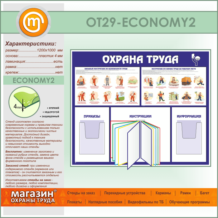 Стенд «Охрана труда» с перекидной системой и 2 объемными карманами (OT-29-ECONOMY2) в Пушкино купить