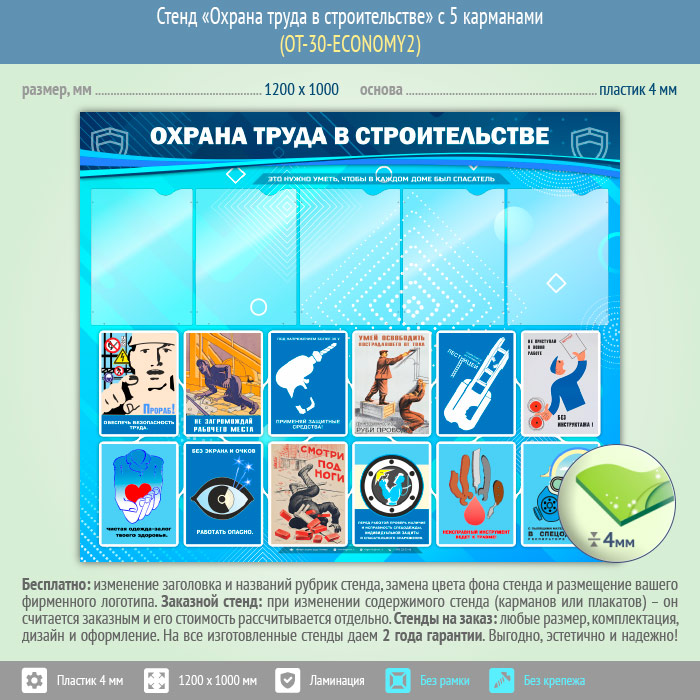 Стенд «Охрана труда в строительстве» с 5 карманами (OT-30-ECONOMY2) в Пушкино купить