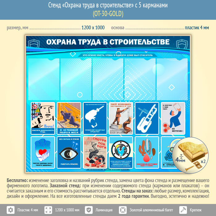Стенд «Охрана труда в строительстве» с 5 карманами (OT-30-GOLD) в Пушкино купить