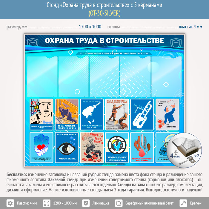Стенд «Охрана труда в строительстве» с 5 карманами (OT-30-SILVER) в Пушкино купить