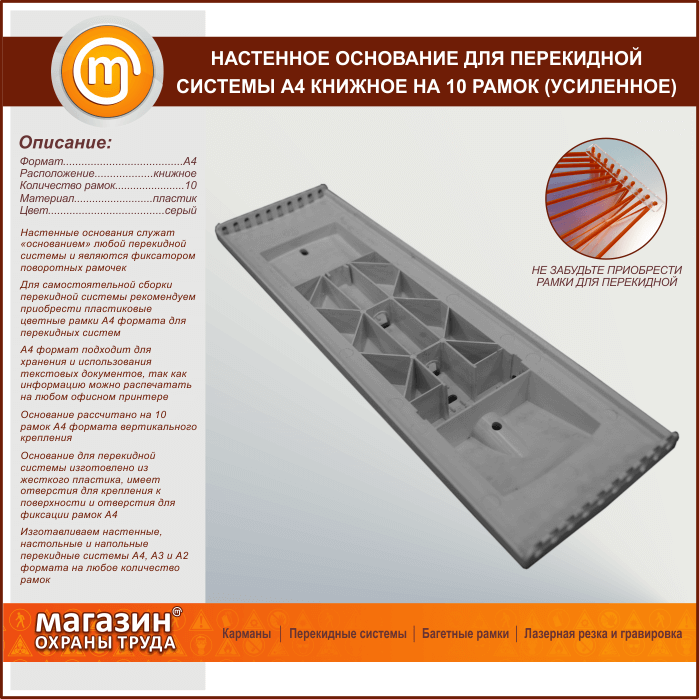 Настенное основание для перекидной системы А4 книжное на 10 рамок (усиленное) в Пушкино купить