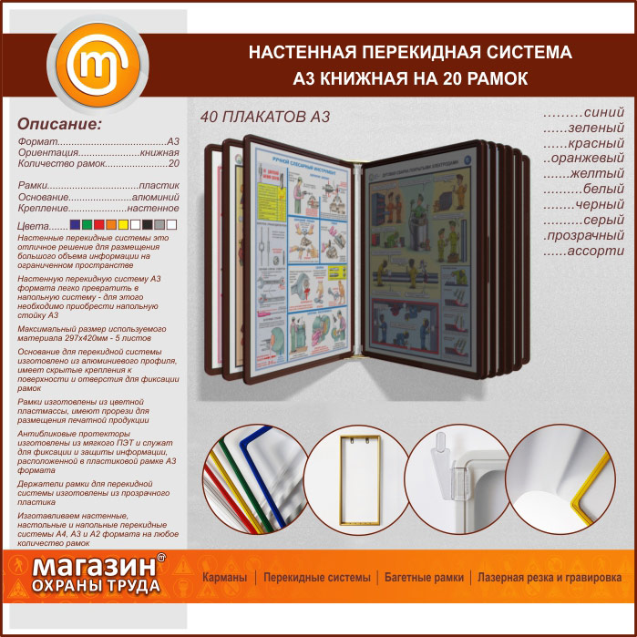 Настенная перекидная система А3 на 20 рамок книжная в Пушкино купить