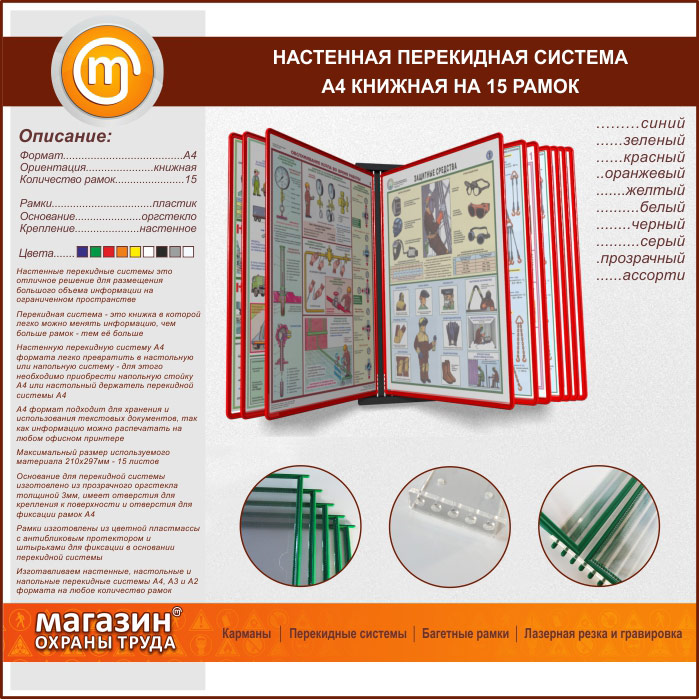 Настенная перекидная система А4 на 15 рамок книжная в Пушкино купить