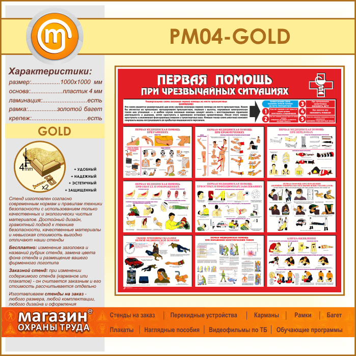 Стенд «Первая помощь при чрезвычайных ситуациях» (PM-04-GOLD) в Пушкино купить