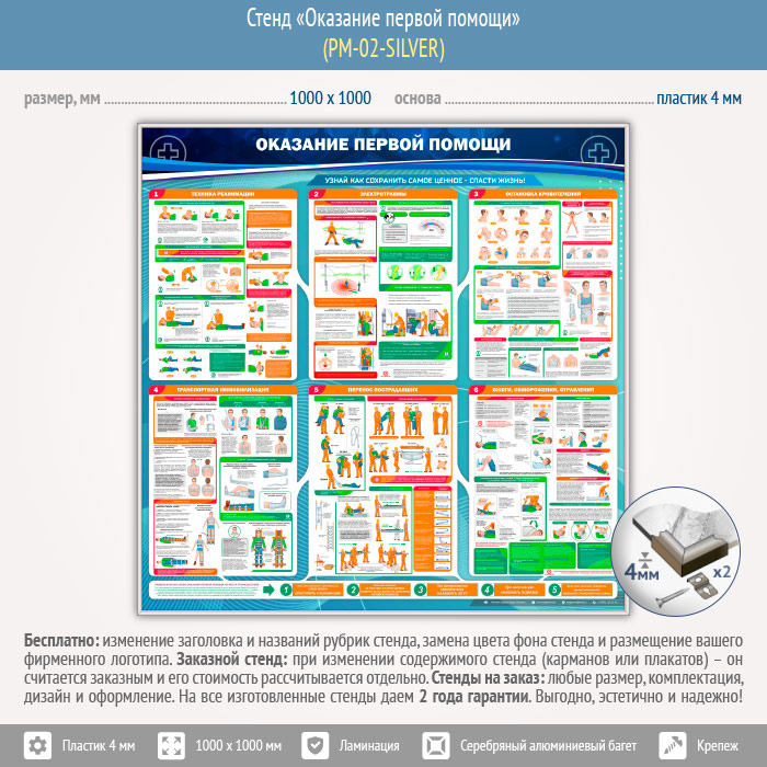 Стенд «Оказание первой помощи» (PM-02-SILVER) в Пушкино купить