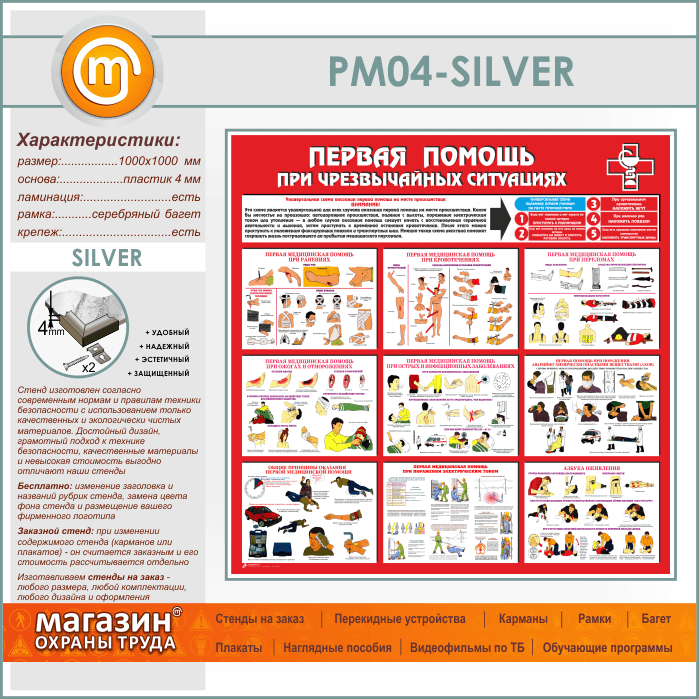 Стенд «Первая помощь при чрезвычайных ситуациях» (PM-04-SILVER) в Пушкино купить