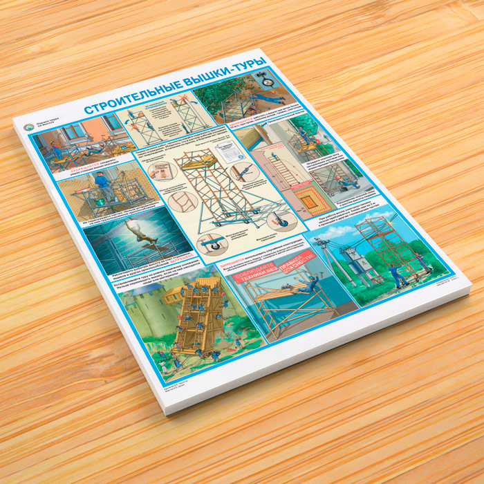 Плакат «Охрана труда на высоте. Строительные вышки-туры» (С-87, ламинир. бумага, А2, 1 лист)