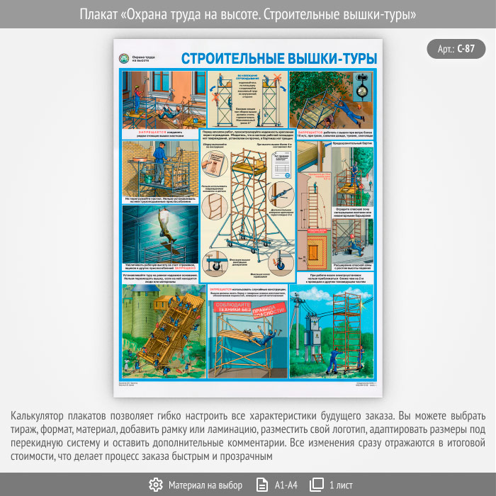 Плакат «Охрана труда на высоте. Строительные вышки-туры» (С-87, 1 лист)