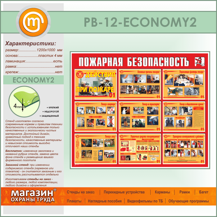 Стенд «Пожарная безопасность. Действия при пожаре» (PB-12-ECONOMY2) в Пушкино купить