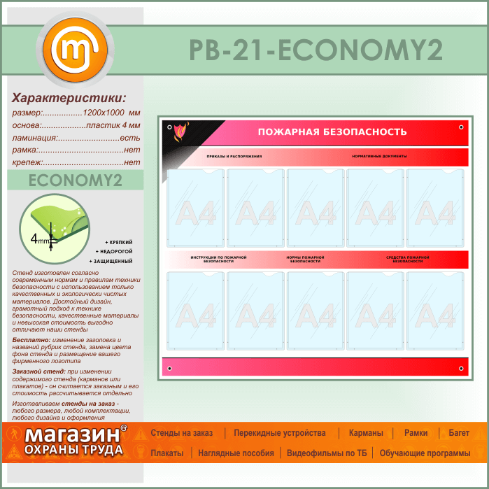 Стенд «Пожарная безопасность» с 10 карманами (PB-21-ECONOMY2) в Пушкино купить
