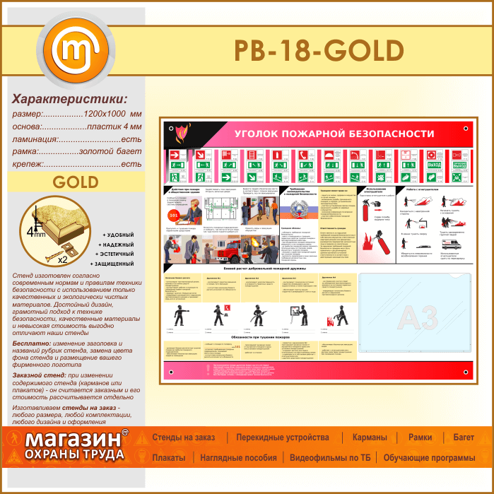 Стенд «Уголок пожарной безопасности» с карманом А3 формата (PB-18-GOLD) в Пушкино купить