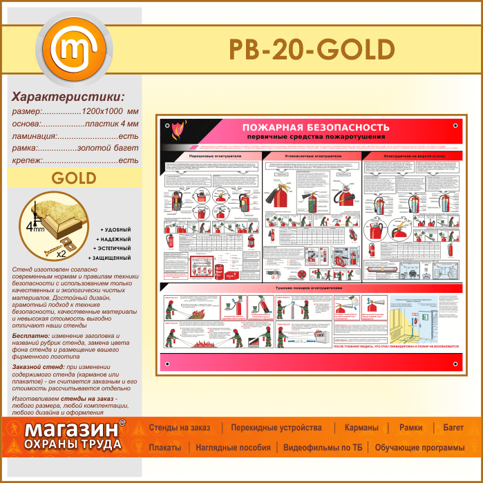 Стенд «Пожарная безопасность. Первичные средства пожаротушения» (PB-20-GOLD) в Пушкино купить