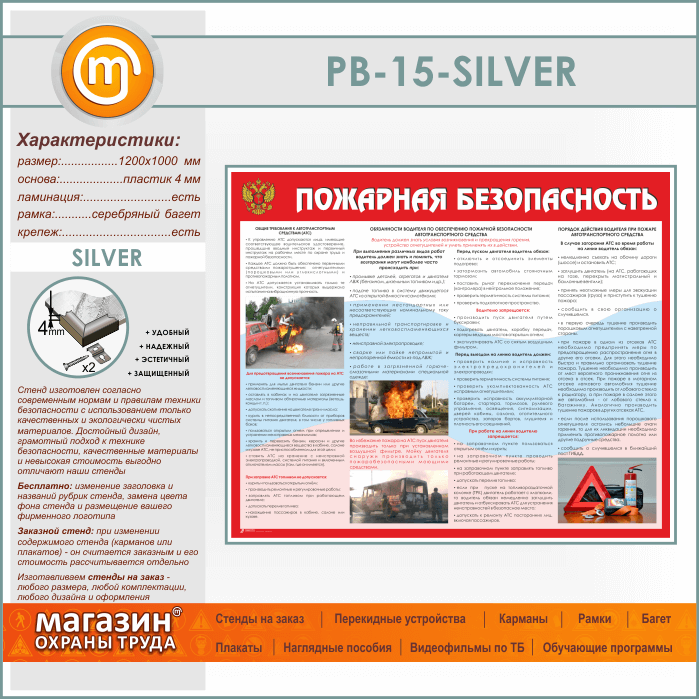 Стенд «Пожарная безопасность на автотранспорте» (PB-15-SILVER) в Пушкино купить