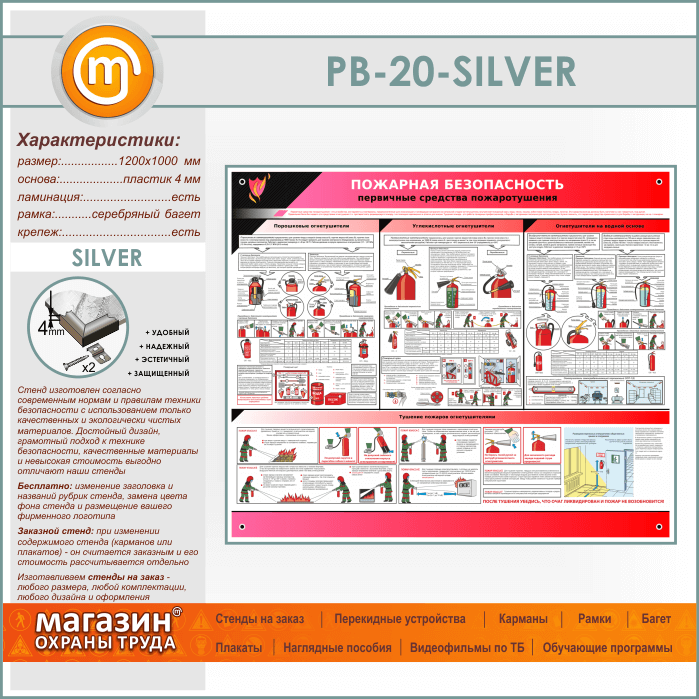 Стенд «Пожарная безопасность. Первичные средства пожаротушения» (PB-20-SILVER) в Пушкино купить