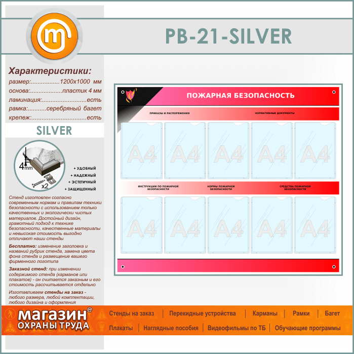 Стенд «Пожарная безопасность» с 10 карманами (PB-21-SILVER) в Пушкино купить