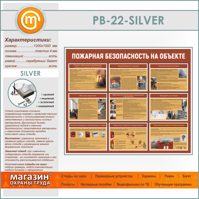 Стенд «Пожарная безопасность на объекте» (PB-22-SILVER) в Пушкино купить
