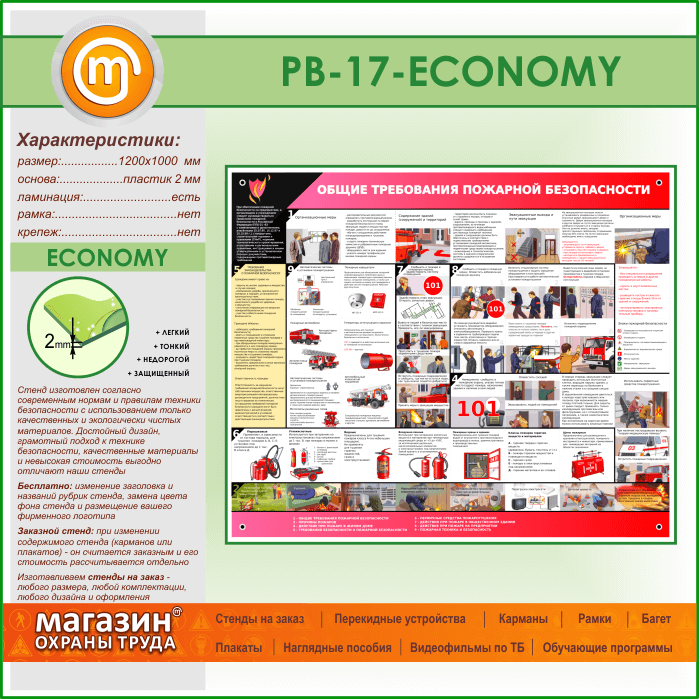 Стенд «Общие требования пожарной безопасности» (PB-17-ECONOMY) в Пушкино купить