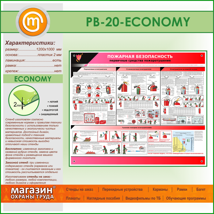Стенд «Пожарная безопасность. Первичные средства пожаротушения» (PB-20-ECONOMY) в Пушкино купить