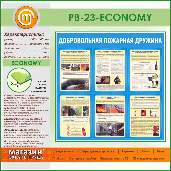 Стенд «Добровольная пожарная дружина» (PB-23-ECONOMY) в Пушкино купить