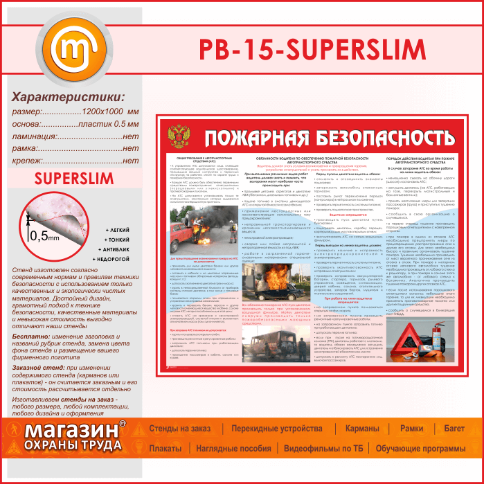 Стенд «Пожарная безопасность на автотранспорте» (PB-15-SUPERSLIM) в Пушкино купить