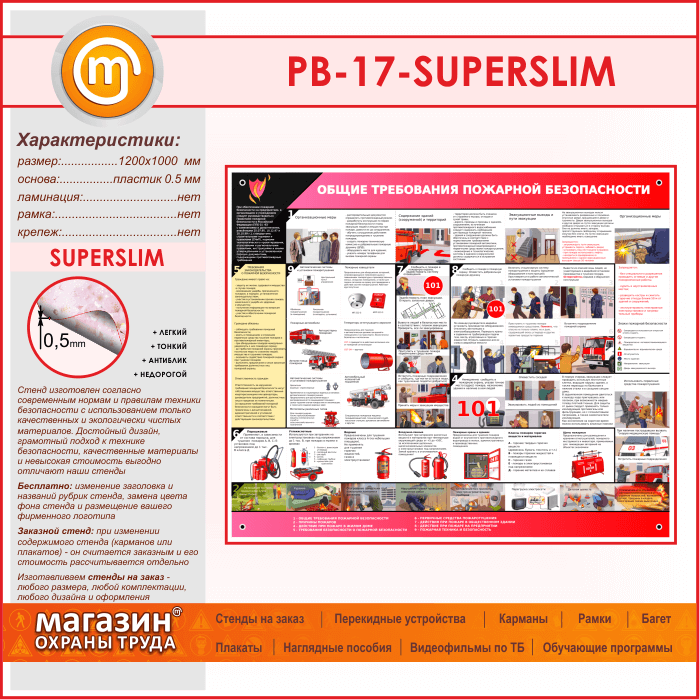 Стенд «Общие требования пожарной безопасности» (PB-17-SUPERSLIM) в Пушкино купить
