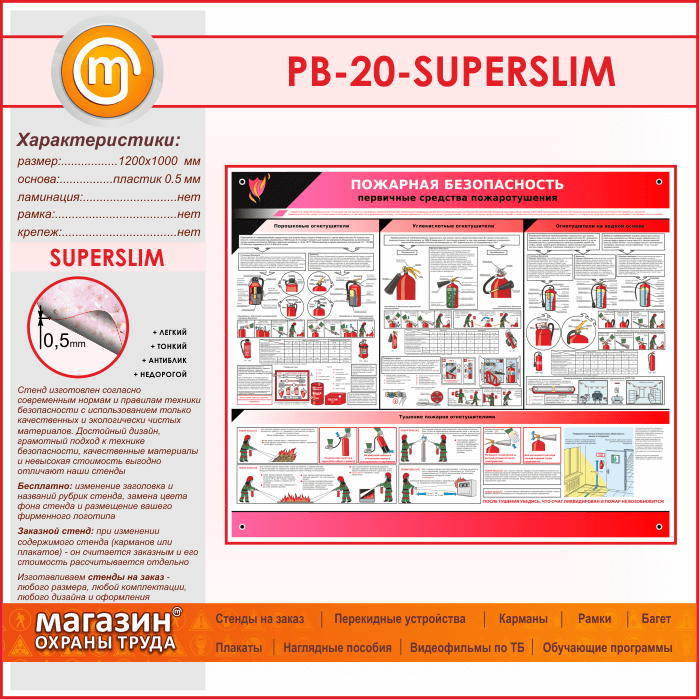 Стенд «Пожарная безопасность. Первичные средства пожаротушения» (PB-20-SUPERSLIM) в Пушкино купить
