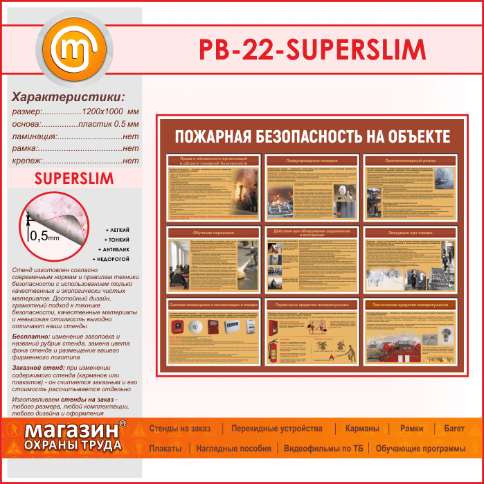 Стенд «Пожарная безопасность на объекте» (PB-22-SUPERSLIM) в Пушкино купить