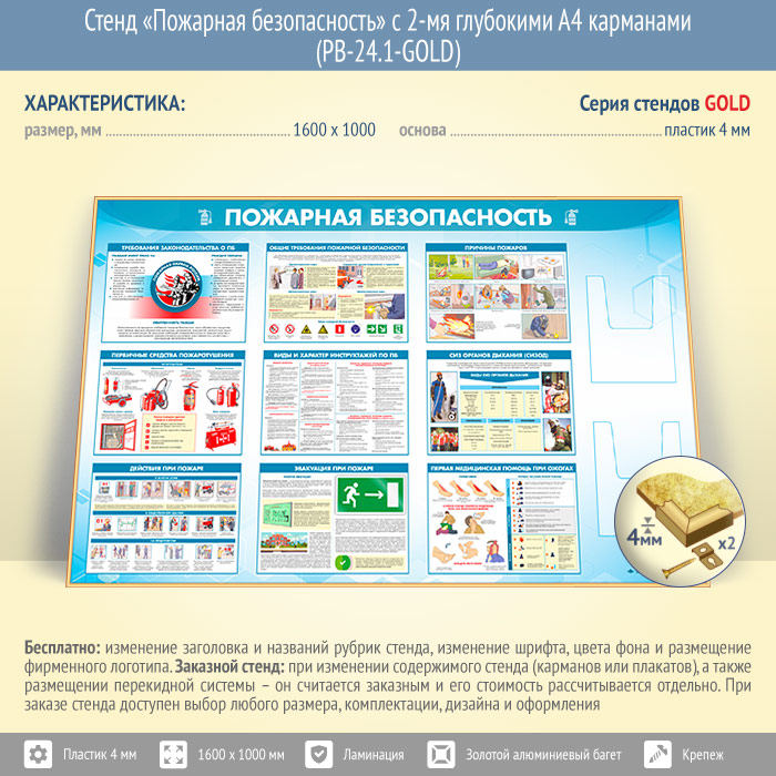 Стенд «Пожарная безопасность» с 2-мя глубокими А4 карманами (PB-24.1-GOLD) в Пушкино купить