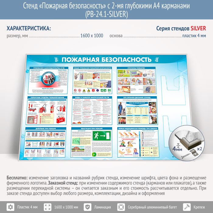 Стенд «Пожарная безопасность» с 2-мя глубокими А4 карманами (PB-24.1-SILVER) в Пушкино купить