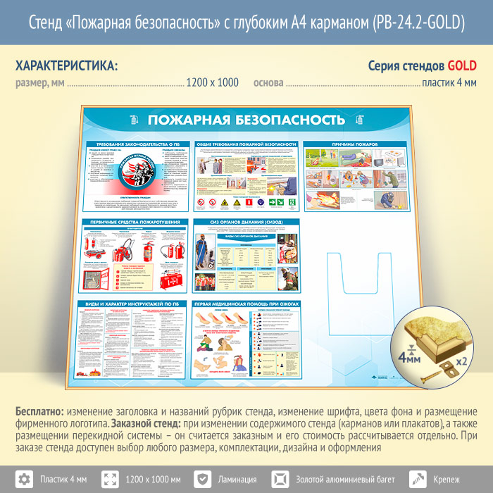 Стенд «Пожарная безопасность» с глубоким А4 карманом (PB-24.2-GOLD) в Пушкино купить