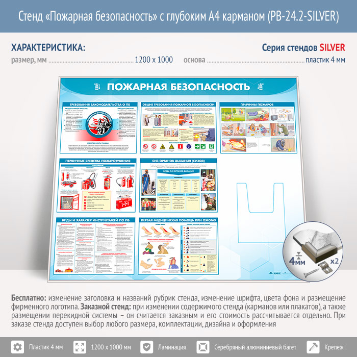 Стенд «Пожарная безопасность» с глубоким А4 карманом (PB-24.2-SILVER) в Пушкино купить