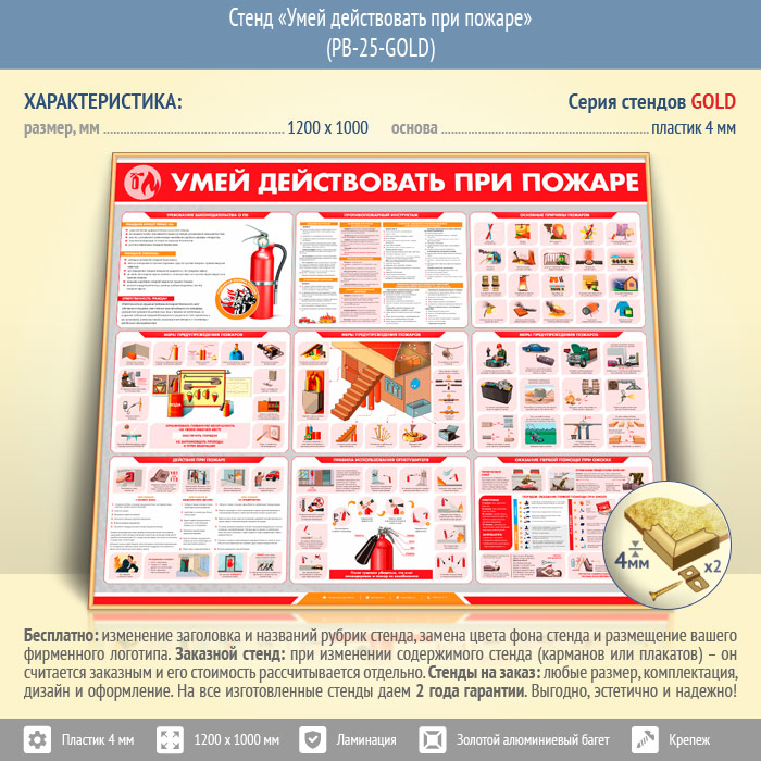 Стенд «Умей действовать при пожаре» (PB-25-GOLD) в Пушкино купить