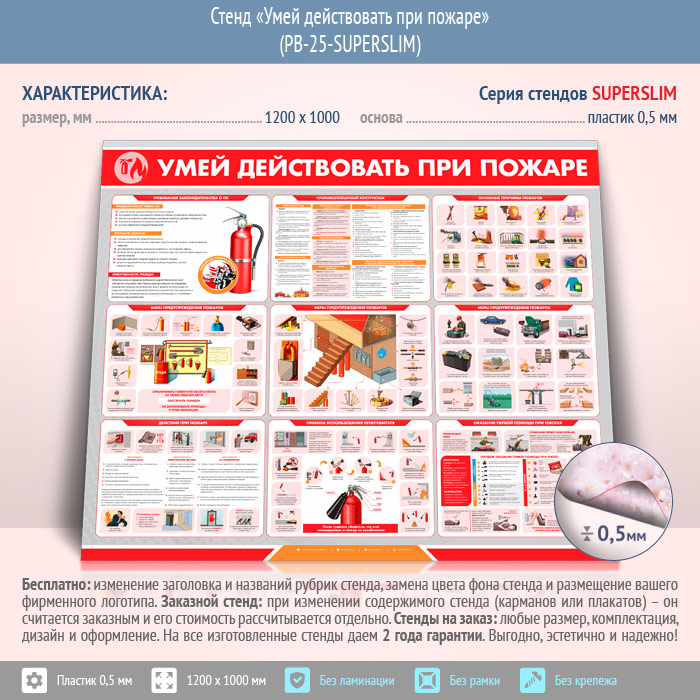 Стенд «Умей действовать при пожаре» (PB-25-SUPERSLIM) в Пушкино купить