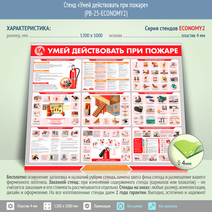 Стенд «Умей действовать при пожаре» (PB-25-ECONOMY2) в Пушкино купить