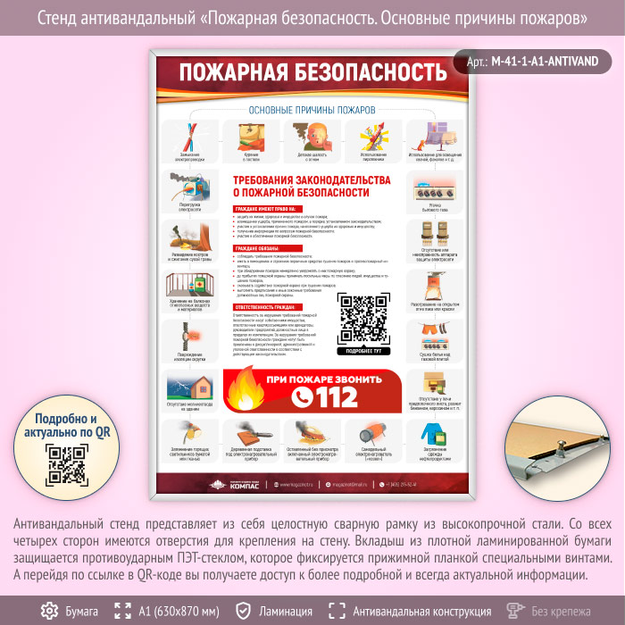 Стенд антивандальный «Пожарная безопасность. Основные причины пожаров» (M-41-1-А1-ANTIVAND) в Пушкино купить